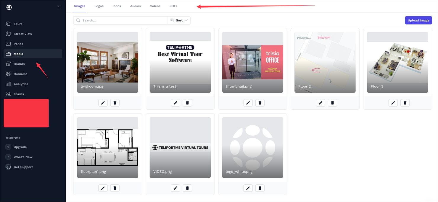 Now you can manage all your media—photos, videos, logos, icons, PDFs, and more—from one central place. Upload, search, and filter assets once, then reuse them across all your tours.